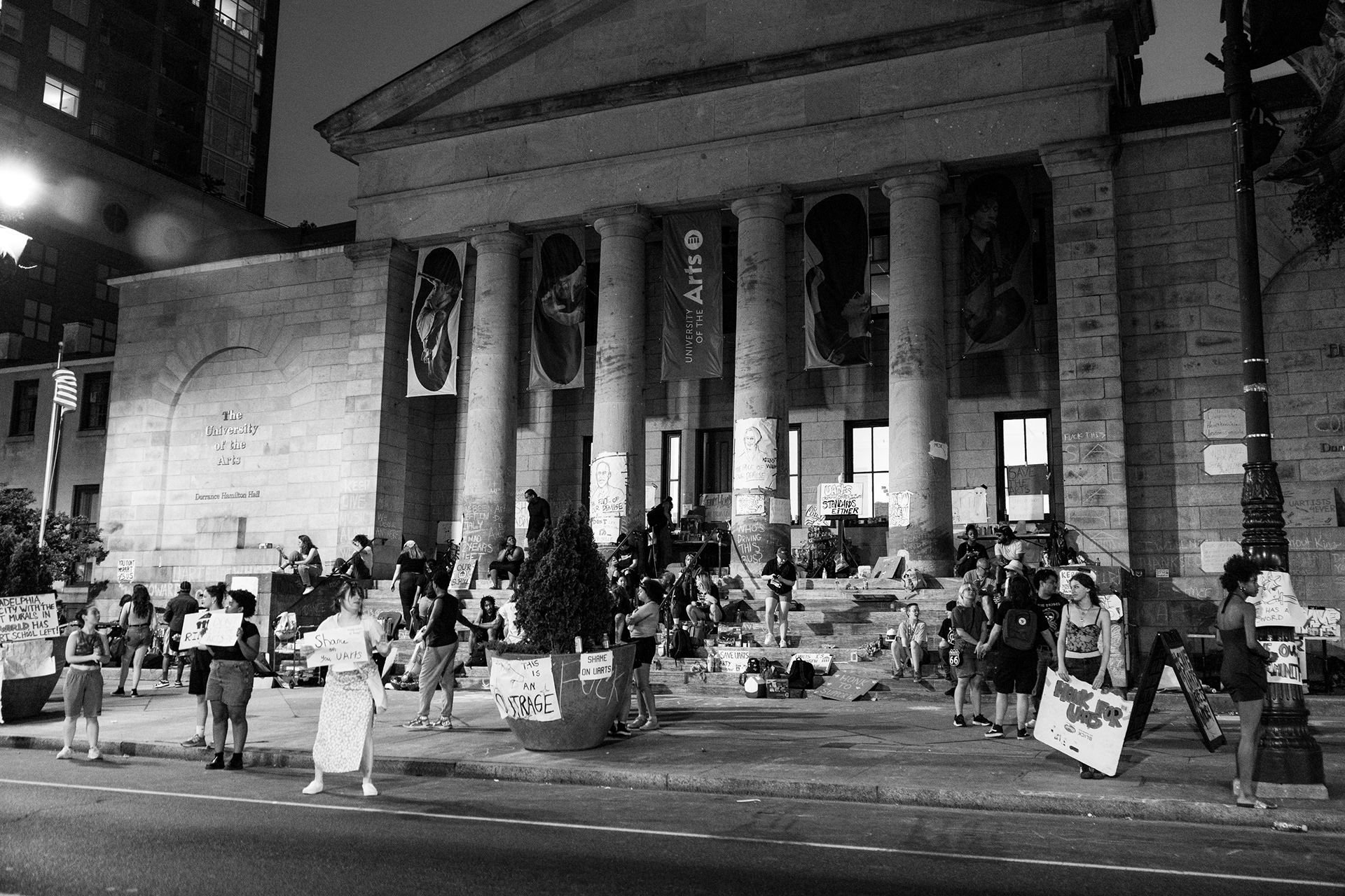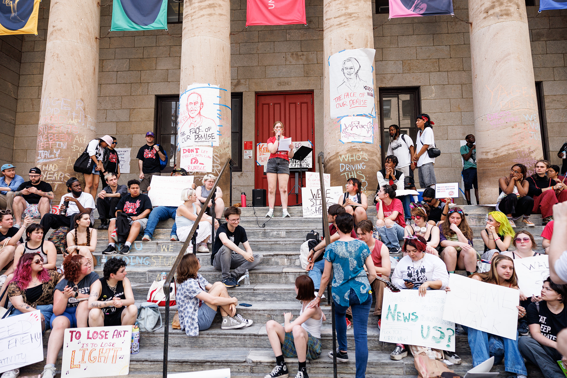 The sudden announcement of the closure (May 31st, 2024) of The University of The Arts in Philadelphia, PA. The students and faculty took it into their own hands to protest the university's President Kerry Walk and the Board of Trustees for not being transparent with them on the sudden closure.